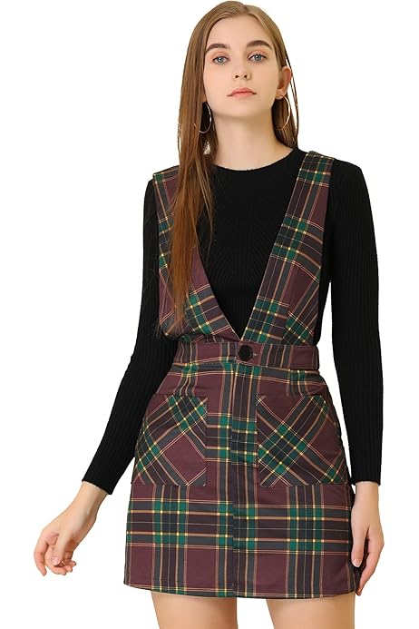 Amazon Com Allegra K Women S Overall Dress Plaid Adjustable Strap Pinafore Mini Suspender Skirt X Small Beige Clothing Shoes Jewelry